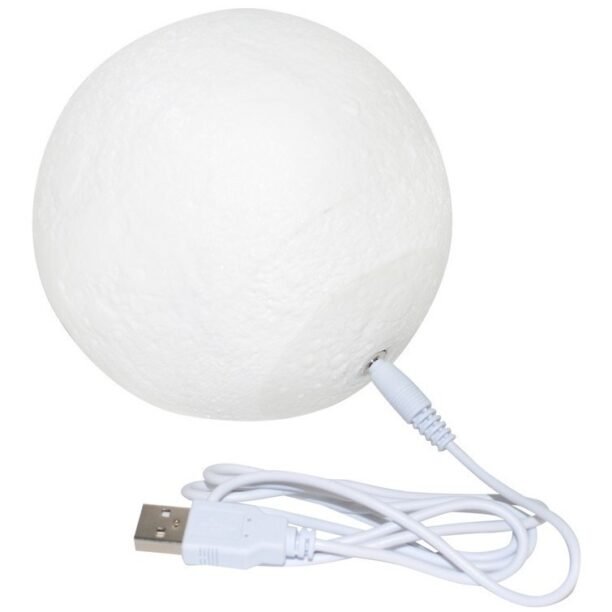 5. insira o conector dc no anel de metal na parte inferior da lâmpada da lua para carregar, a luz vermelha está sempre ligada durante o carregamento.