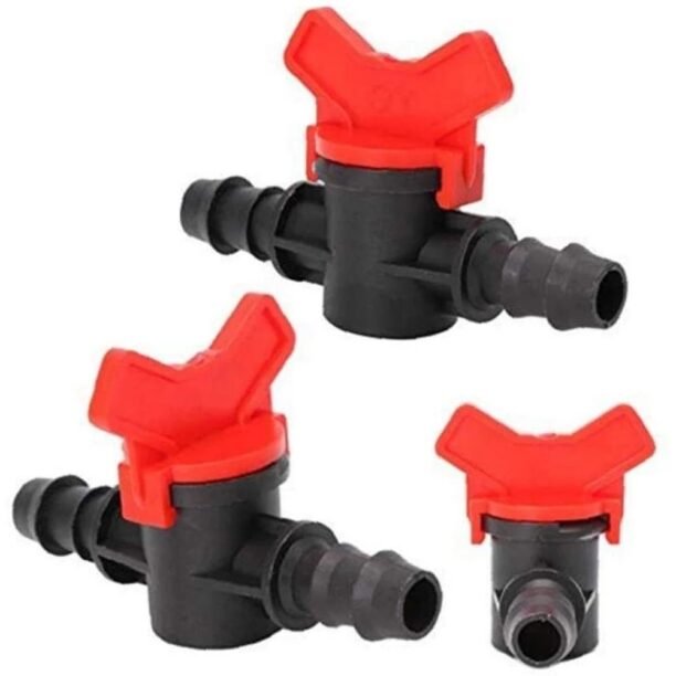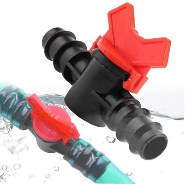 Pode ser usado em tubo de irrigação por gotejamento para ajudá-lo a ajustar o fluxo de água ou desligar a água para economizar energia.