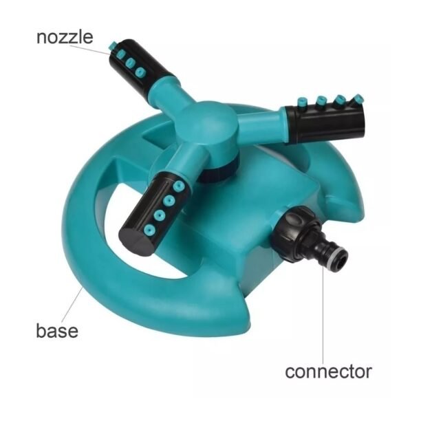 Três Bicos Rotativos 360 Graus: Cobertura completa garantida! Os três bicos giratórios asseguram uma distribuição uniforme da água em todas as direções, atingindo áreas amplas e maximizando a eficácia da irrigação.