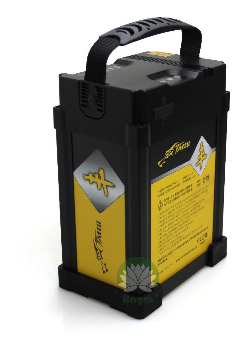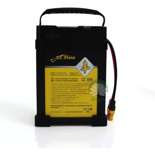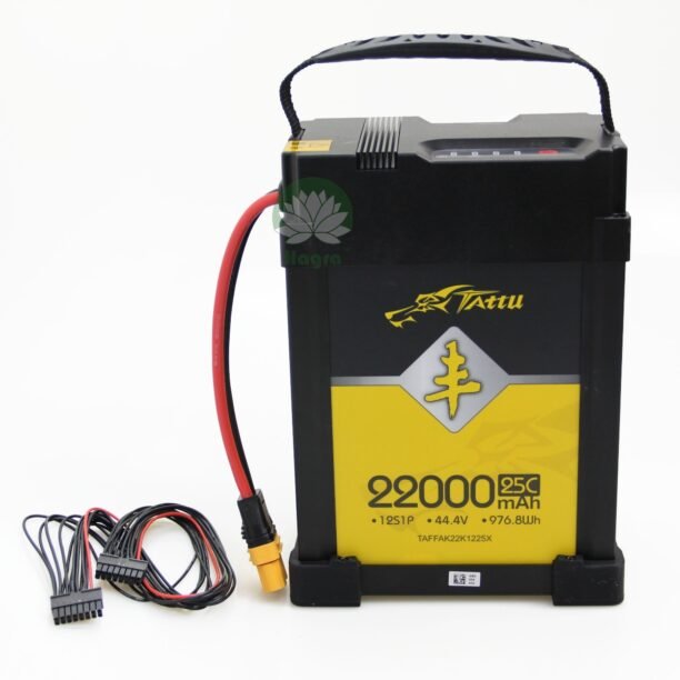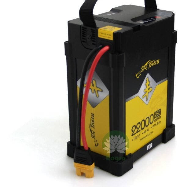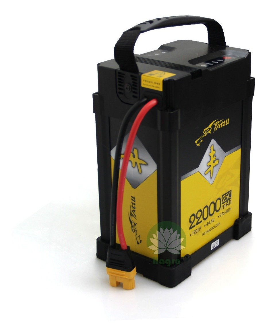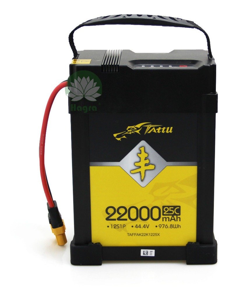 Capacidade mínima: 22000mah-Configuração: 12s1p/44.4v/12 células-Taxa de descarga: 25c-Taxa máxima da descarga da explosão: 50cPeso líquido: 6kgDimensões: 234mm x 163mm x 105mm