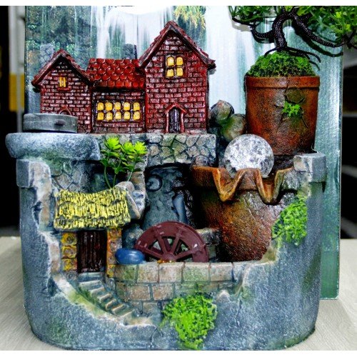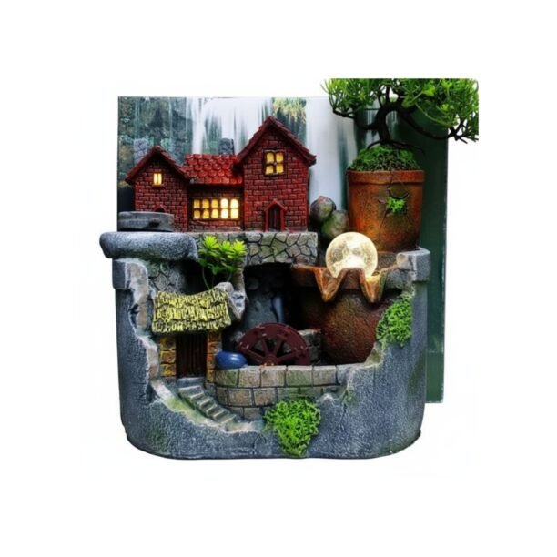 Fonte Água Cascata Resina Com Led Paisagem Completa