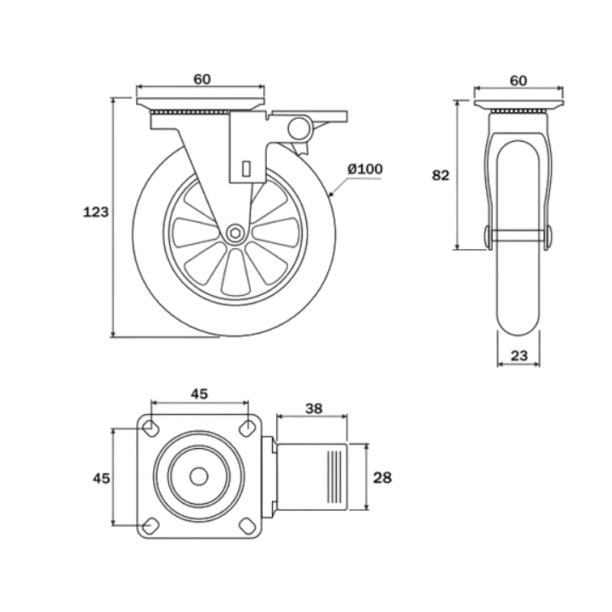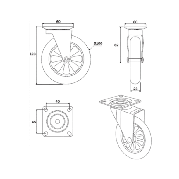 Fácil Instalação: Pode ser facilmente fixado em diferentes superfícies. Durabilidade: Fabricado com materiais de alta qualidade, garantindo longa vida útil. pacote incluir : 2 rodízio Silicone Giratório 100MM e 2 C/Freio