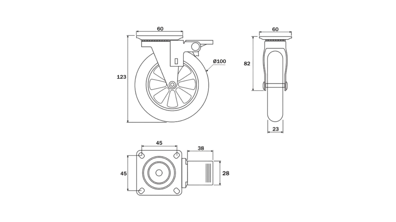 Rodízio Silicone Giratório 100MM S/ Freio e C/Freio