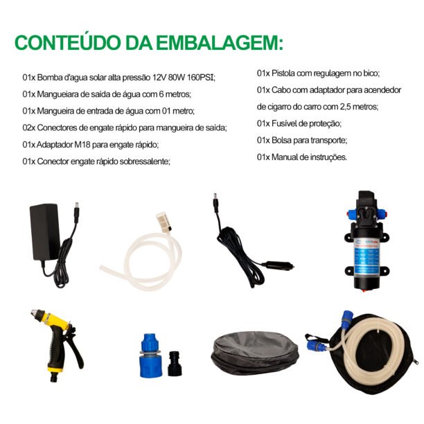 I – Kit completo e prático para lavagem de carro, limpeza e higienização de objetos, calçadas e pedras;