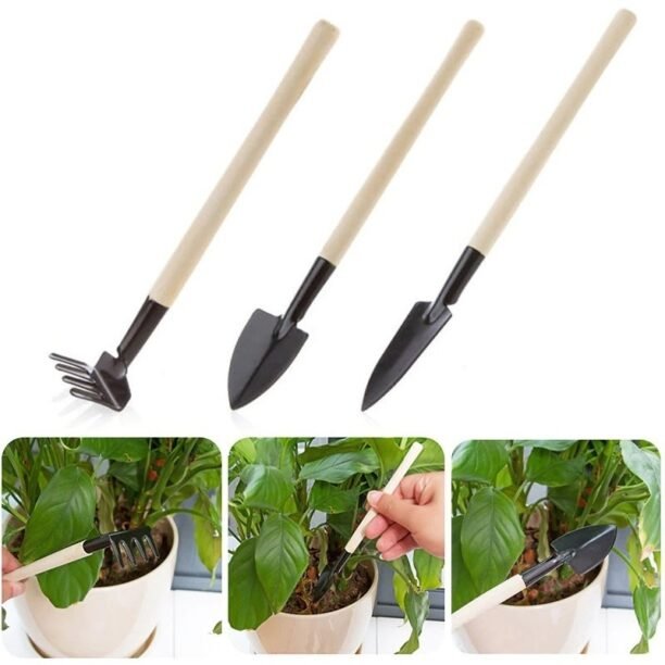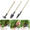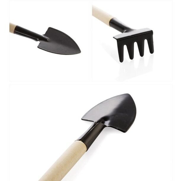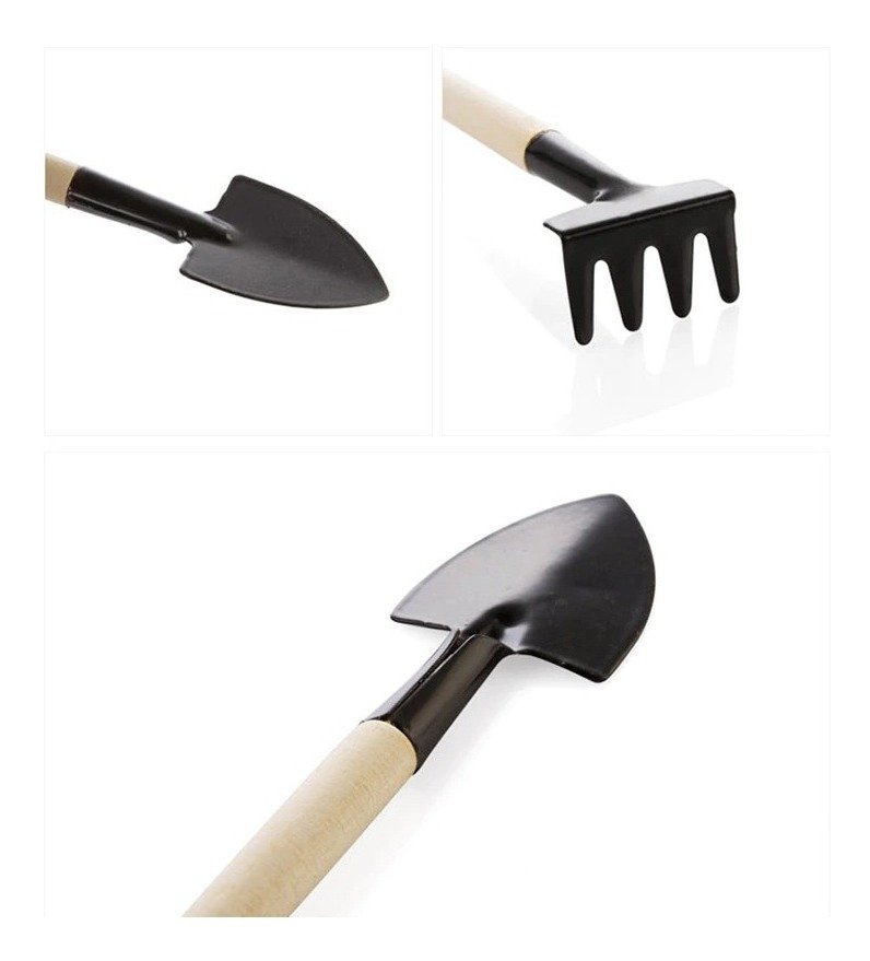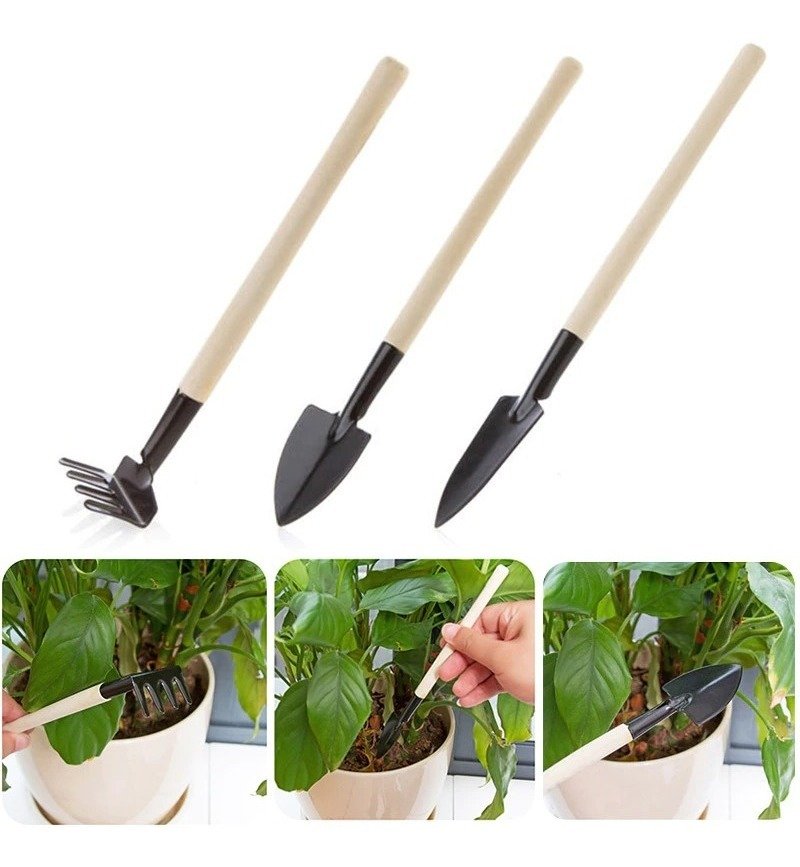 Mini conjunto de ferramentas de jardinagem de jardim de plantas com alça de madeira. Construção de ferro com alças de madeira confortáveis. Prático conjunto de três peças, pequeno e bonito, acessível, amor flores pessoas ajudante necessário Adequado para transplantar mudas vegetais plantio de flores, cultivo, capina.