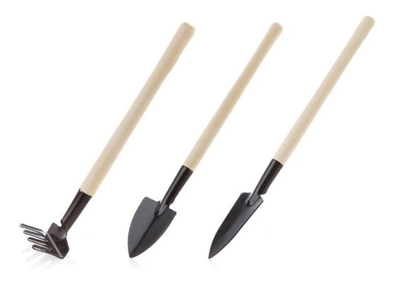 Kit Mini Ferramentas P/jardinagem Vasos 21cm Madeira