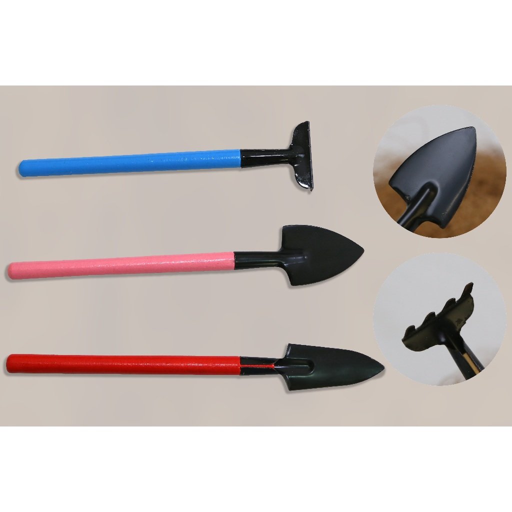 – 1 Pá Larga – Modelo indicado para cavar e transportar terra; – 1 Pá Estreita – Ideal para o plantio de mudas, uma vez que seu formato estreito facilita o plantio; – 1 Ancinho – Funciona como um pequeno arado, rastelando a camada mais superficial do solo, para que este se torne mais soltinho.