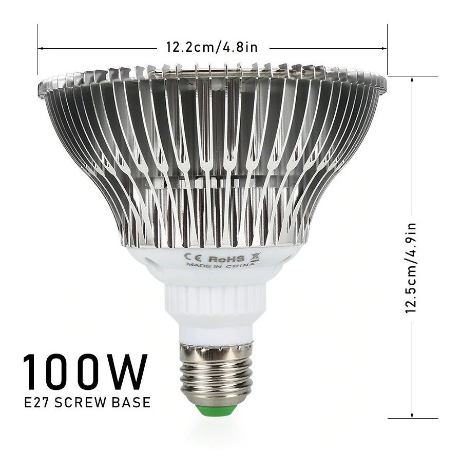 OBS : Lâmpadas Grow NÃO POSSUEM potência real em lúmens, pois possuem leds que emitem IR e UV que não são detectáveis ao olho humano, nem a equipamentos que detectam luminosidade.