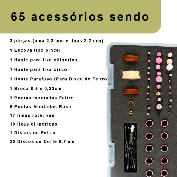 Micro Retifica Bateria Com Maleta e 65 Acessórios 3.7V USB-C