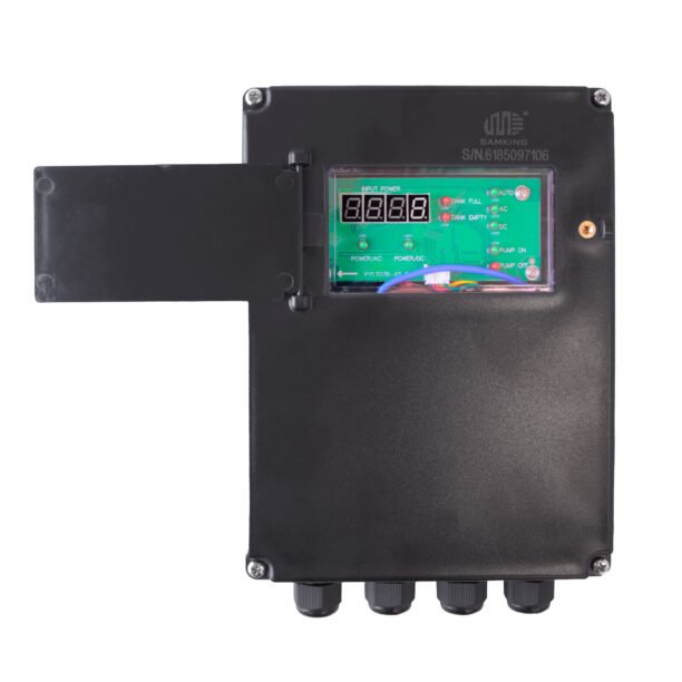 Sistema de monitorização desenvolvido para manter o sistema de bombagem solar em pleno funcionamento, garatindo sempre o melhor desempenho. Visor digital com indicação instantânea da potência consumida, nível de água e estado da bomba. CaracterísticasControlo de nível de água.Estado de funcionamento da bomba.Proteção contra sobre tensões.Permite receber alimentação tanto em AC (corrente alterna), como DC (corrente contínua).Contato seco para arranque de gerador de corrente.