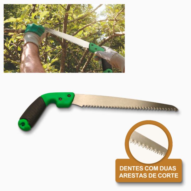 Lâmina: Afiada e durável, perfeita para podas precisas em galhos e arbustos.