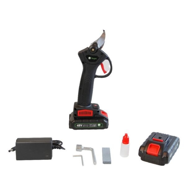 Design ergonômico e leve: Proporciona conforto e facilidade de uso, ideal para trabalhos contínuos sem causar cansaço nas mãos.Corte preciso e rápido: Lâminas afiadas que cortam com facilidade galhos, economizando tempo e esforço.Sem fio: Liberdade de movimento, permitindo que você se desloque com facilidade no jardim ou horta, sem a limitação de cabos.Carregamento rápido: Baterias que podem ser recarregadas rapidamente para que você sempre tenha energia disponível.