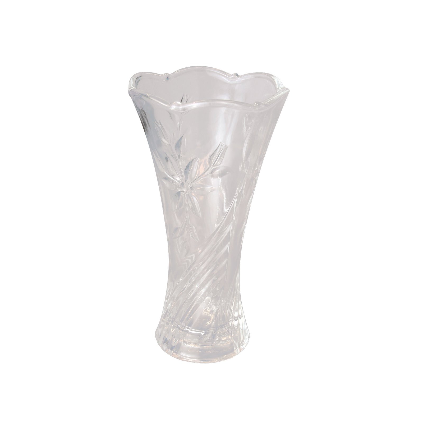 Vaso De Vidro Alto Relevo 24cm Decor Flores Enfeite