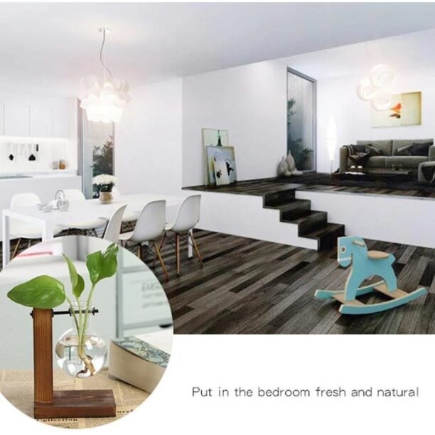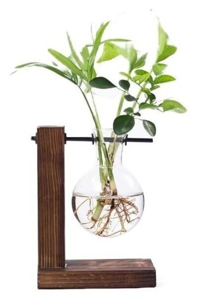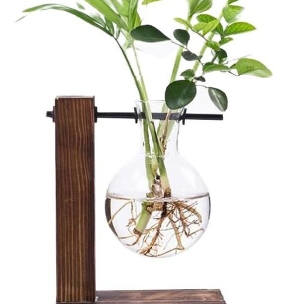 Material: vidro, madeira maciça Função: vaso de mesa (não incluindo plantas!!! )