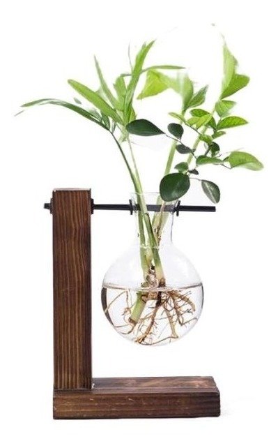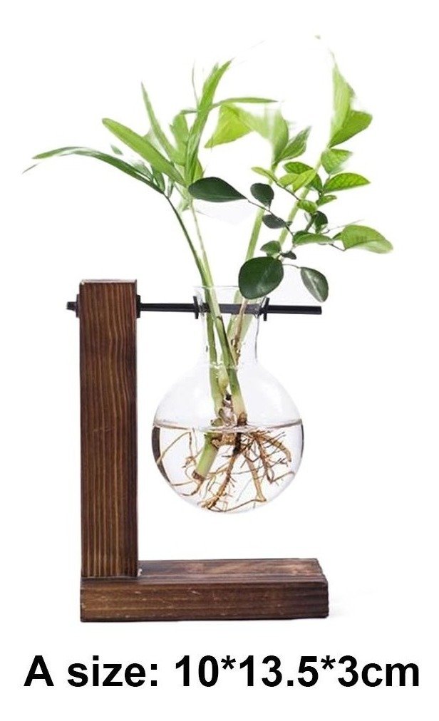 Vaso De Vidro C/suporte De Madeira Decoração Tipo A
