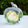 Material: vidro resistente ao calor de borosilicato Forma: Maçã Cor: Transparente Medidas: 10 cm de diâmetro total 5,8 cm diâmetro do furo