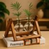 Conjunto Vaso Vidro Bulbo Com Suporte De Madeira Duplo