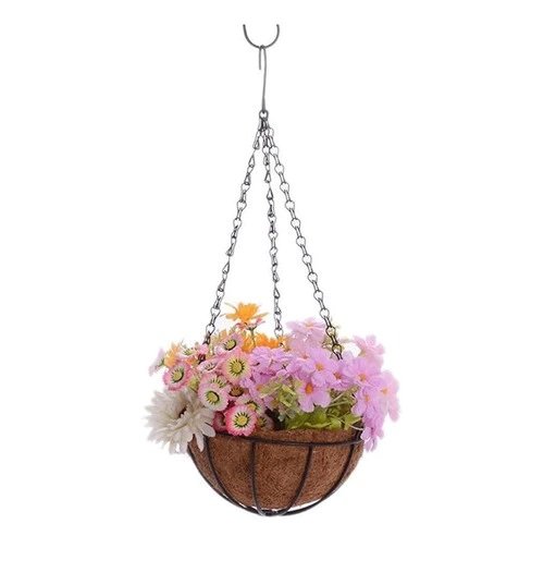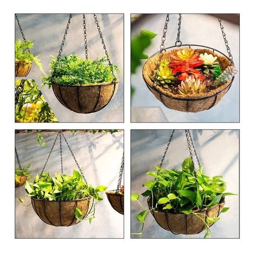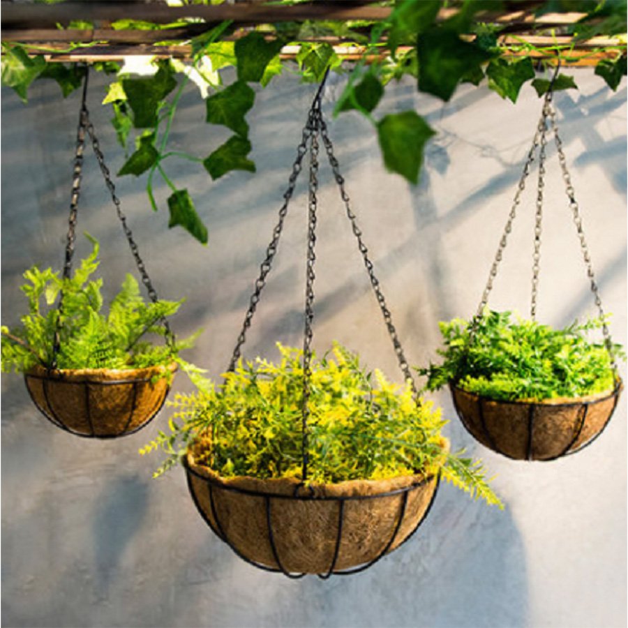 Estes vasos de flores de coco tão incrivelmente bonito! Ele vai decorar bem sua casa ou seu jardim. Os são muito resistentes e duráveis. A armação é feita de ferro e o pote de palma de coco. Esta cesta de suspensão permite-lhe cultivar plantas e flores na varanda ou janela, fazendo pleno uso do espaço. Deixe o verde decorar sua casa. Com moldura de ferro engrossado, bem como elaboradamente selecionado e engrossado almofada de palma de coco, é resistente e durável com boa capacidade de rolamento.